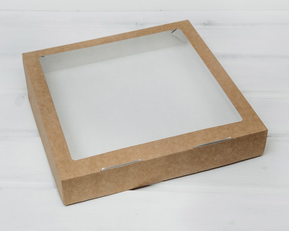 Коробка для выпечки и пирожных, 25,3х25,3х4,3 см, с прозрачным окошком, крафт
