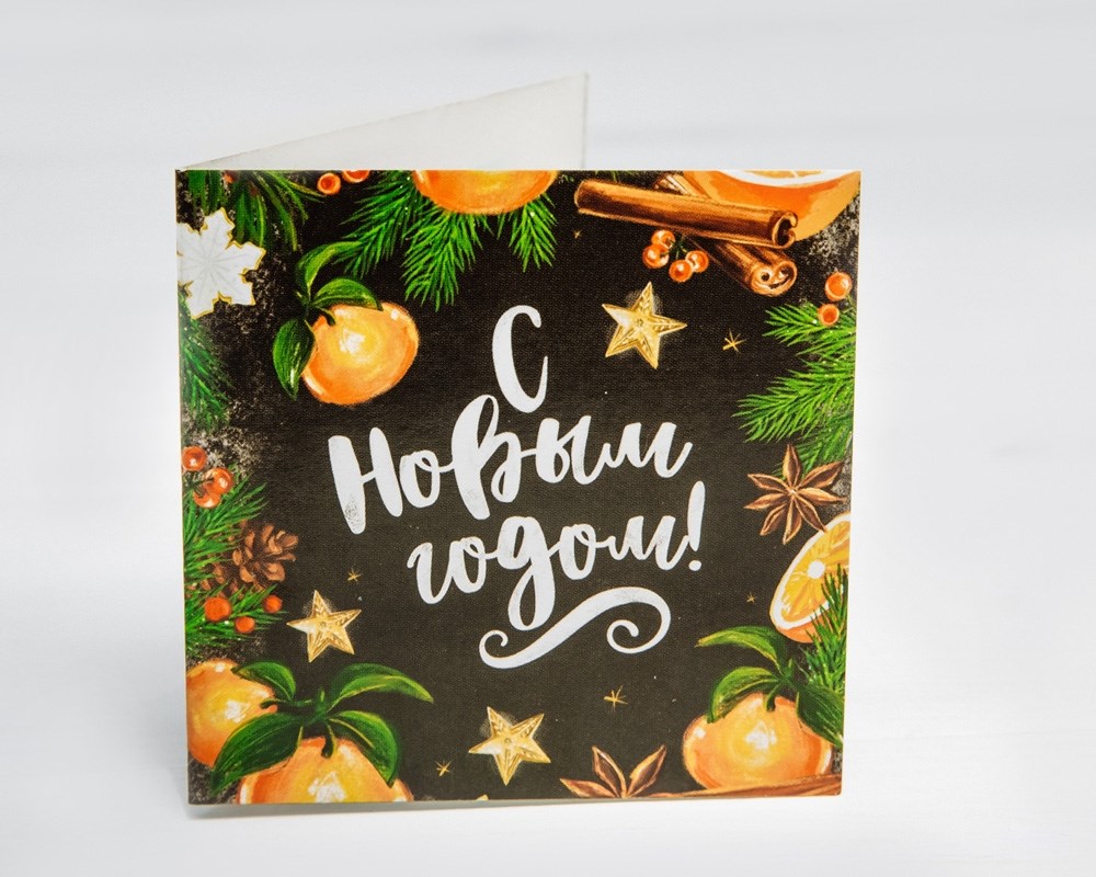 Открытка «С Новым Годом!», апельсины и корица, 7х7 см, 1 шт.