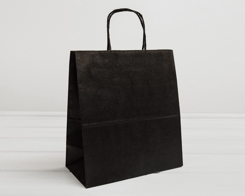 Пакет бумажный, 31х28х14 см, с кручеными ручками, черный