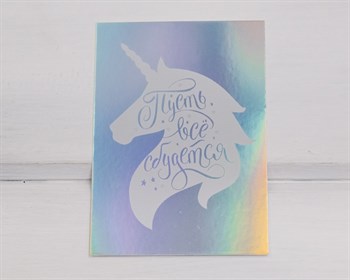 УЦЕНКА Открытка с голографией «Пусть все сбудется», единорог, 7,5х10см, 1 шт.